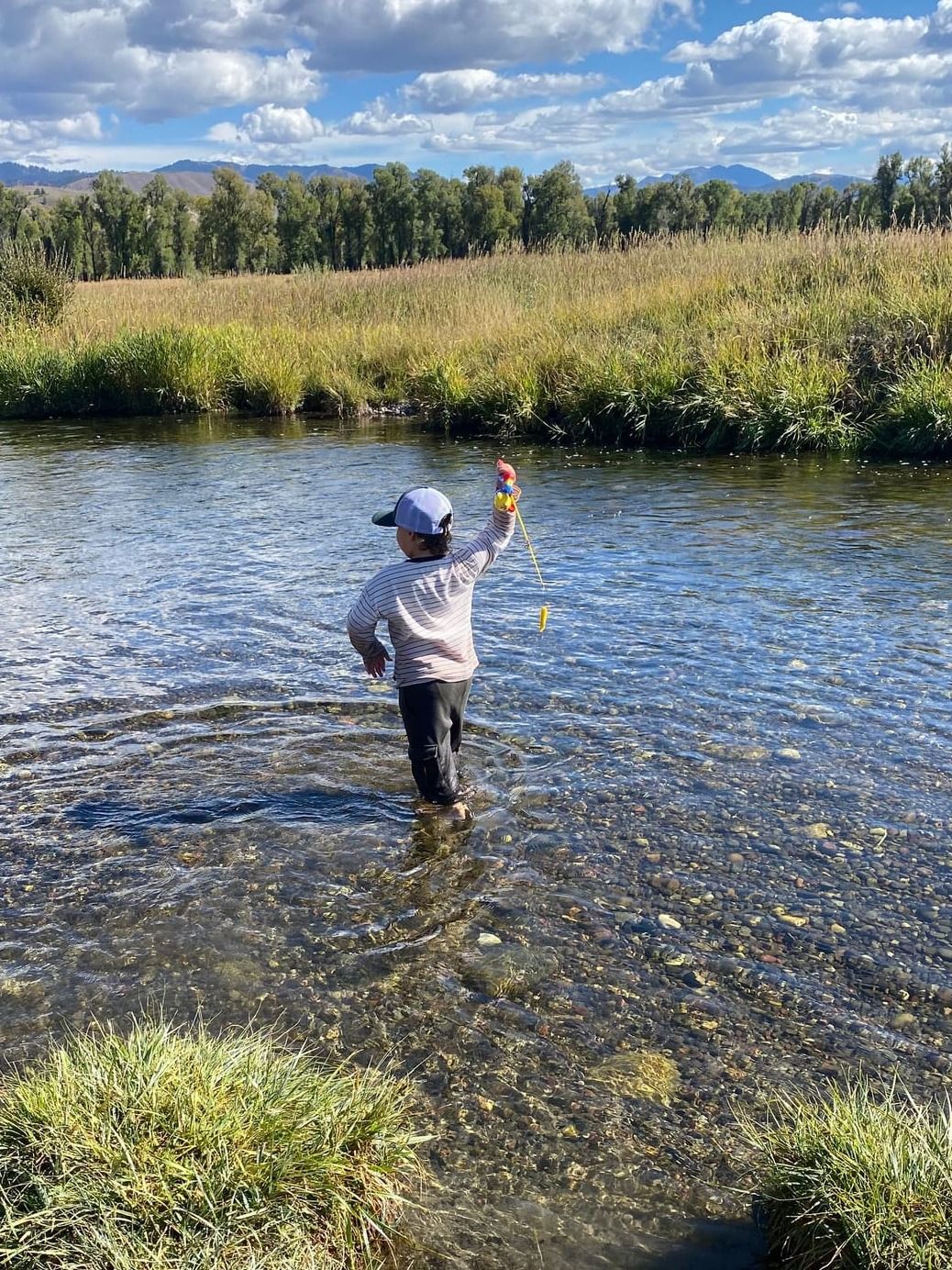 Aaron, Sayer, and Sully had a blast on Sayer’s first fishing adventure. They found a cute, secluded spot on Flat Creek, south of Jackson, and spent the afternoon practicing casting, and even using Sayer’s very first “wiggly, squiggly” nightcrawlers. At one point, Sayer grew concerned that they had only bought twelve worms, because he was determined to catch more than twelve fish! Ah, the eternal optimism of childhood. In the end, Sayer’s deep sweetness meant that only one worm was used, while the other eleven were happily released back into the wild. All in all, it was a fabulous afternoon in the sun!