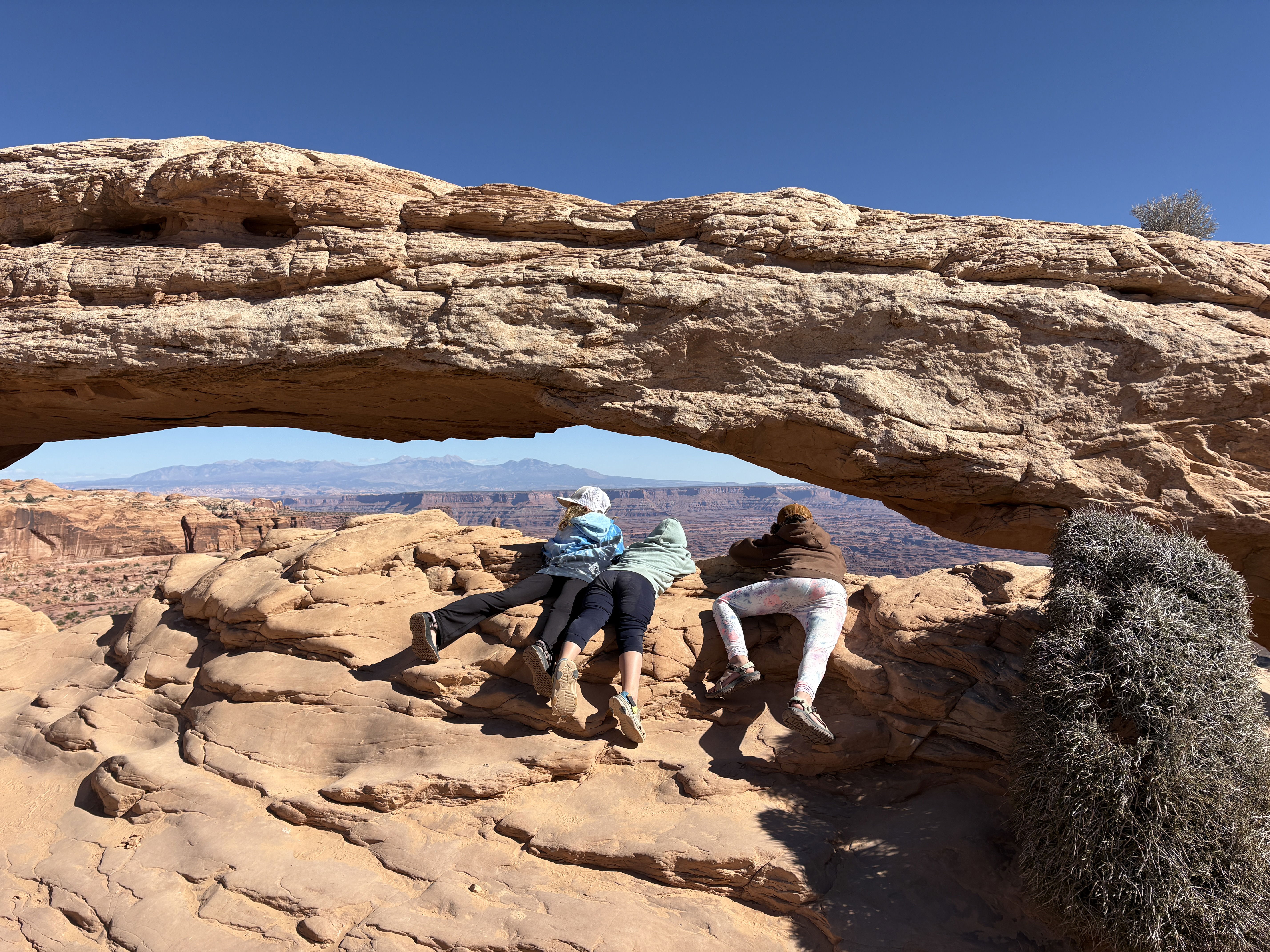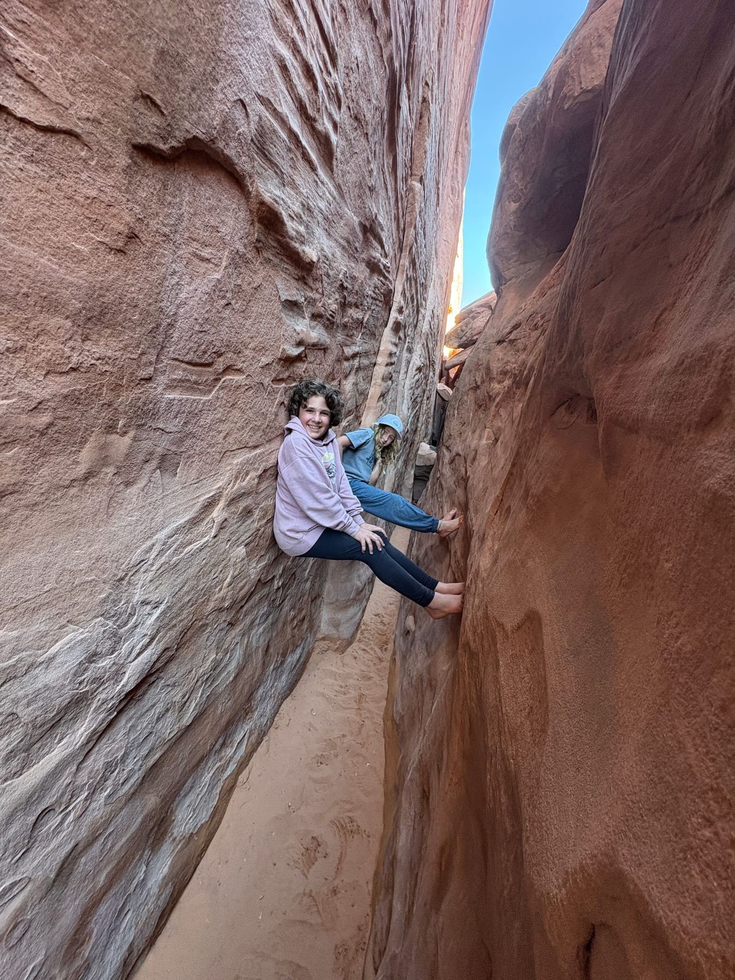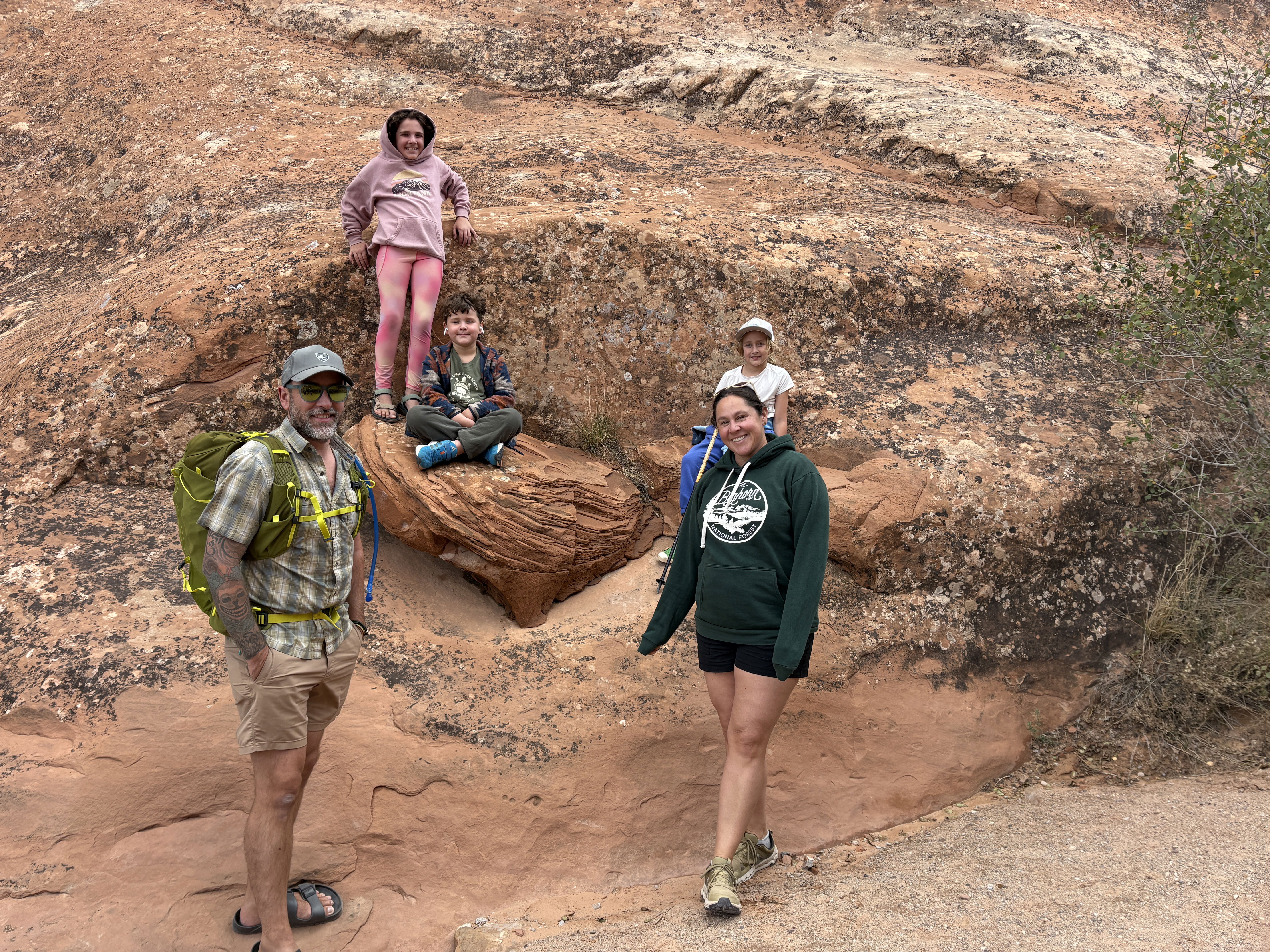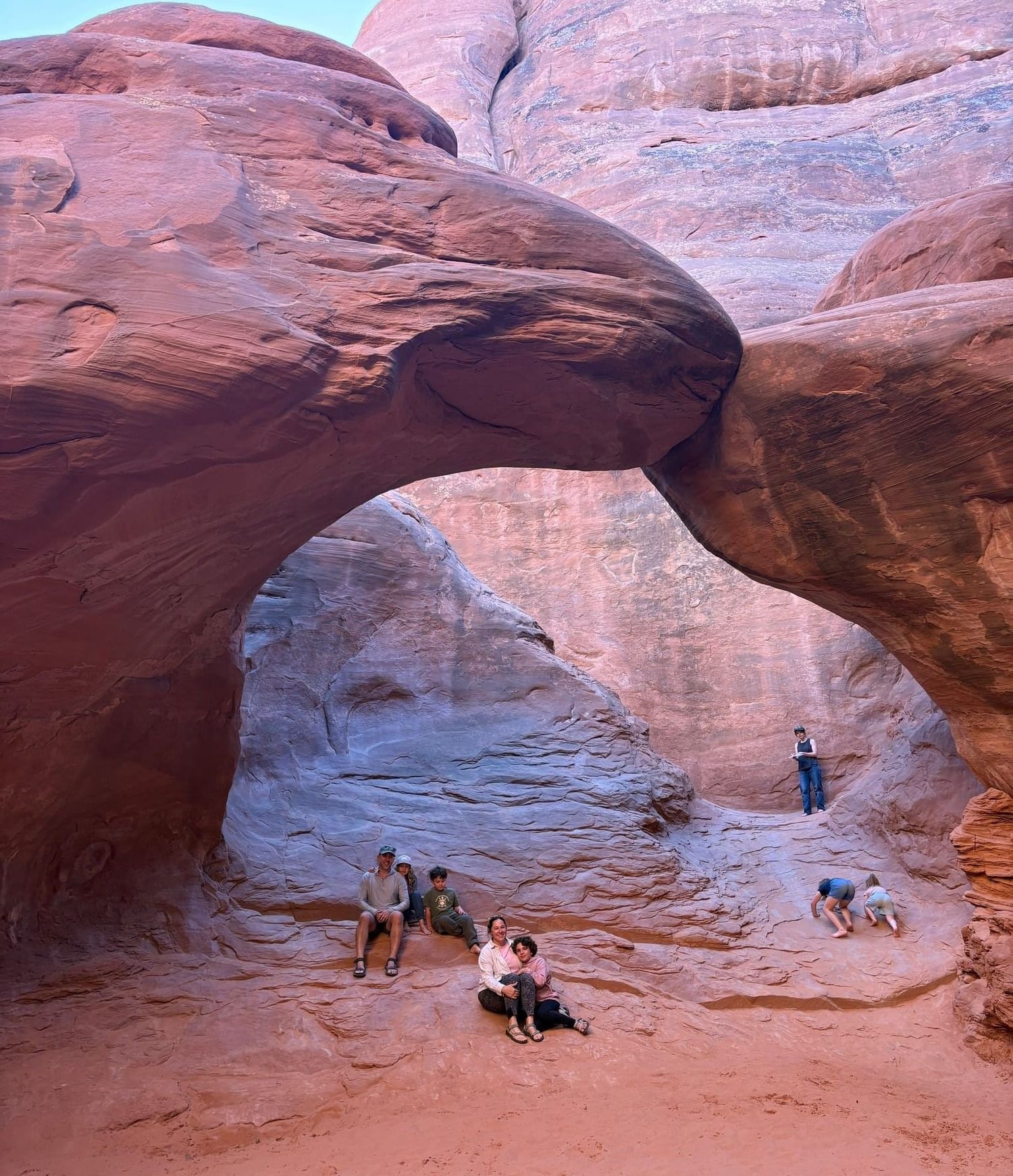 Arches itself was incredible. We did a beautiful little hike to Landscape Arch, and of course we had to see the famous Delicate Arch. I think the kids’ favorite was Sand Dune Arch, which felt like a giant natural playground with a huge sandbox under the arch (Sayer’s dream come true!) and tons of fun rock-scrambling spots. The kids invented an entire imaginary world in one area where each section of rock became a different room in their “house.”
