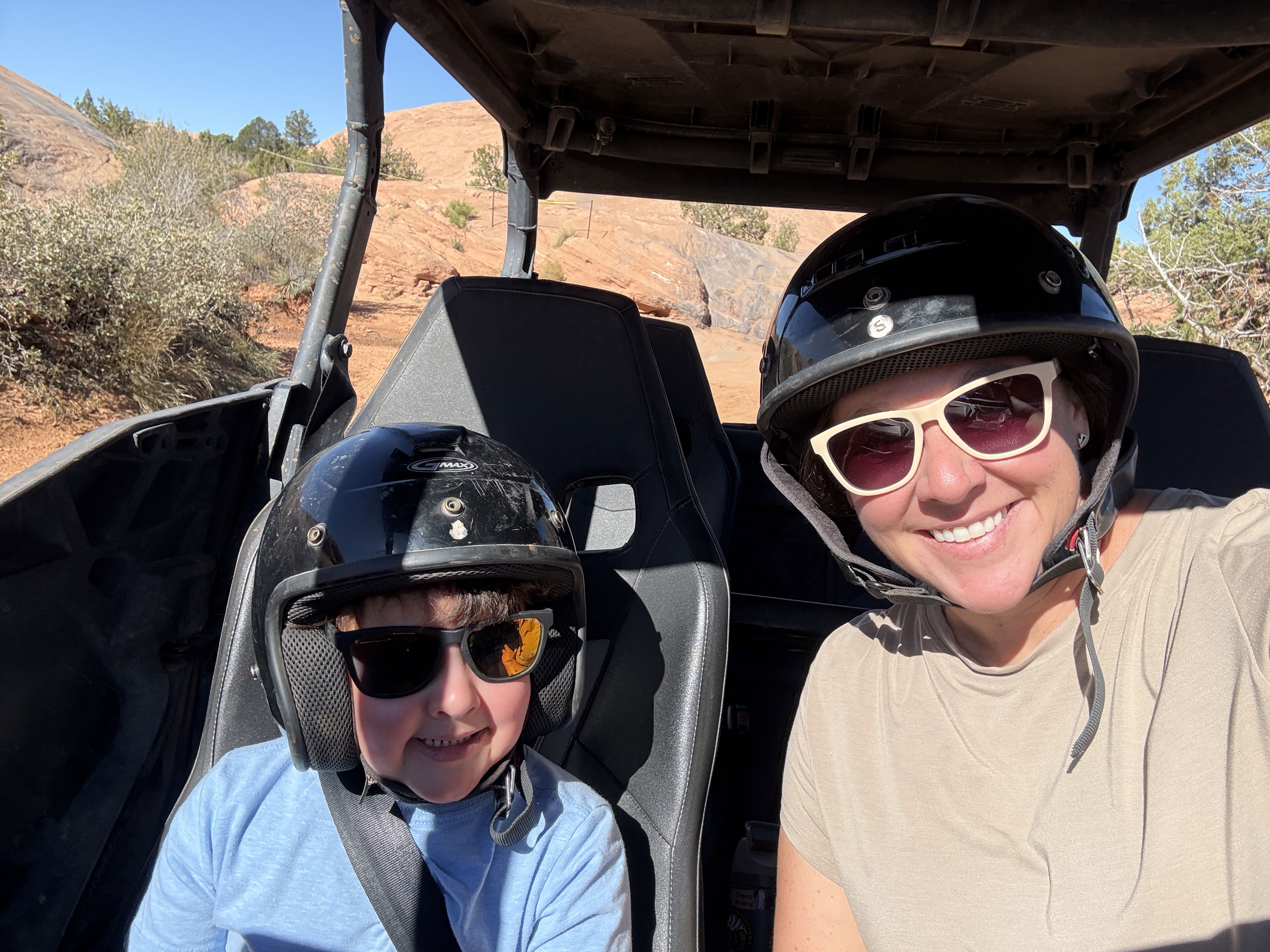 Moab must be the heart of off-roading because we were completely surrounded by every type of off-road vehicle imaginable. We stayed a week and eventually couldn’t resist trying it ourselves, so we signed up for a side-by-side tour. We debated renting one and going out on our own, but we’re so glad we chose the tour. Aaron and I each had our own vehicle, and the kids took turns riding with us. Our guide led us up the wildest obstacles I’ve ever seen. I couldn’t believe the vehicles could do it without flipping. They seemed to defy all laws of physics (or, more likely, they followed them and I just don’t understand physics). There’s no way I would’ve attempted any of those routes if we’d gone out alone.