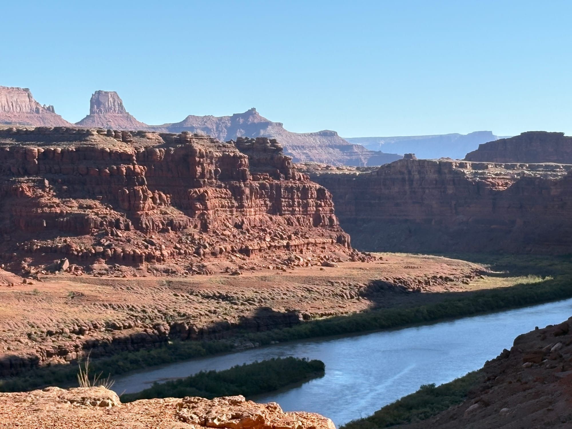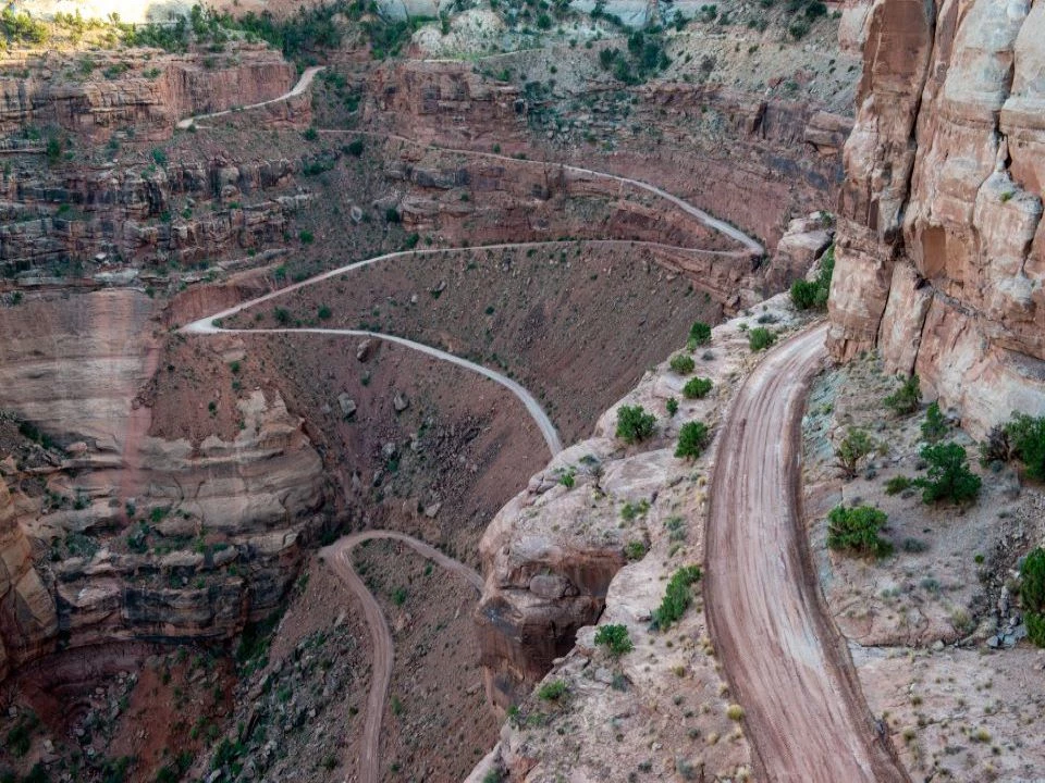We wrapped up our stay with a visit to Canyonlands National Park (yes, more canyons). Honestly, the only thing I truly remember about this park was Shafer Trail, the insane road we drove down into the canyon, with sheer drop-offs that don’t care about your feelings and no option out once you’re committed, followed by the next four hours we spent questioning our life choices as we bounced along the WORST dirt road in existence for ALL OF THE MILES, in our very stiff, great-for-towing but terrible-for-off-roading giant truck. It somehow managed to be the most terrifying and the most boring experience of my entire life. And y’all, I’ve done some scary and boring things in my time. I can officially say I’ve survived Shafer Trail, and I never need to do it again.