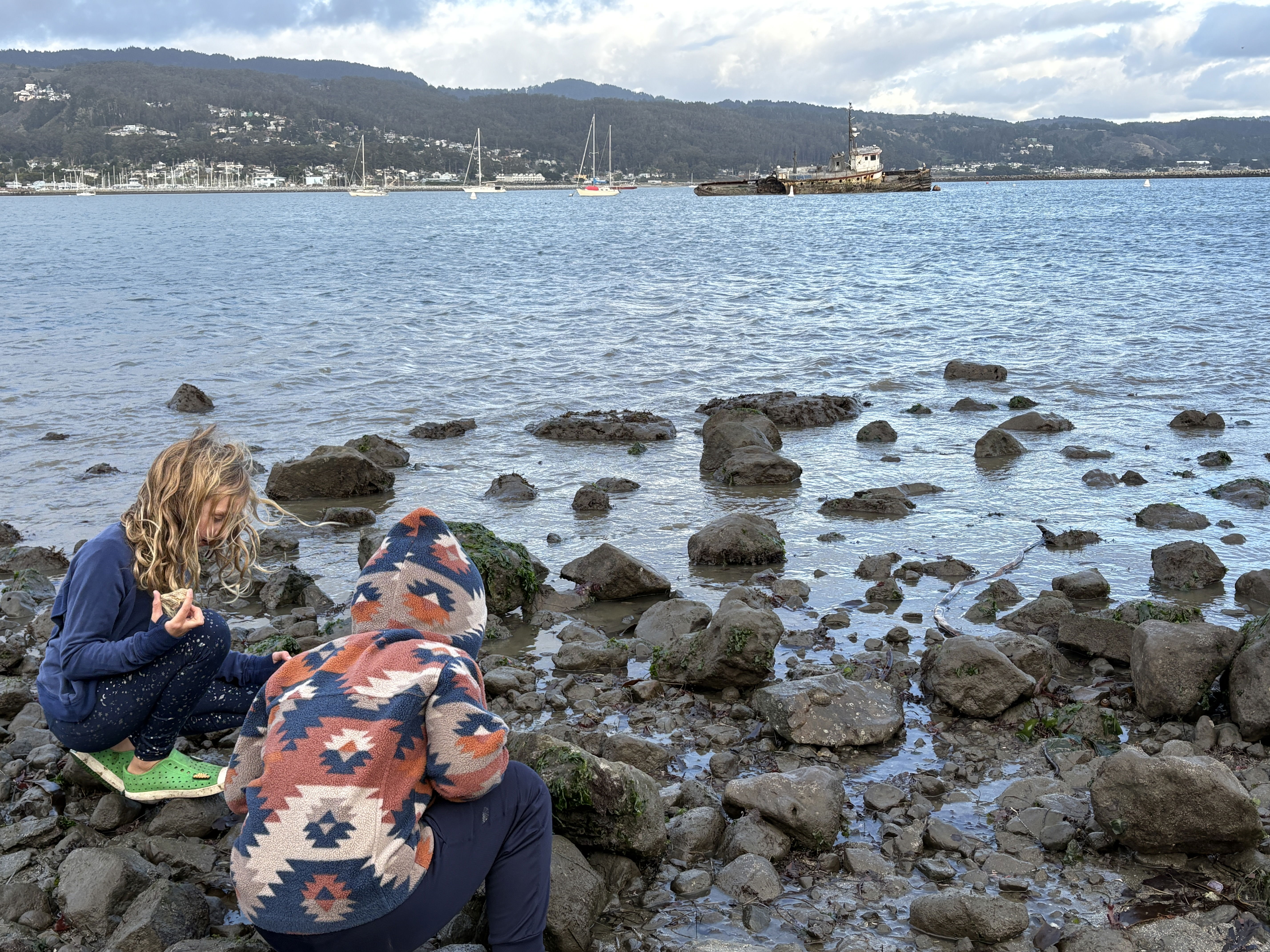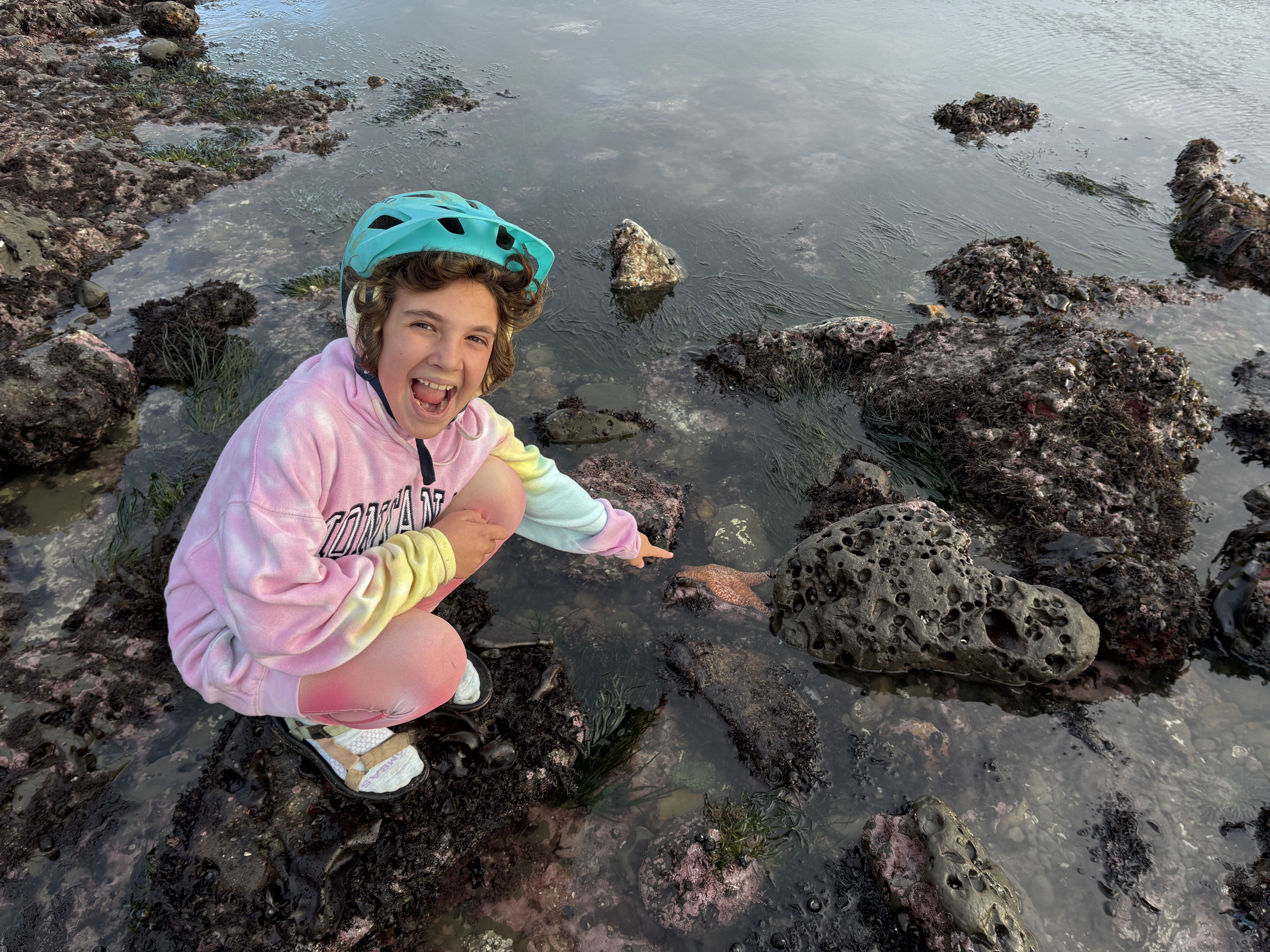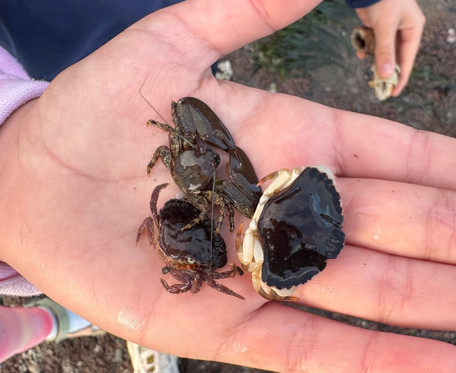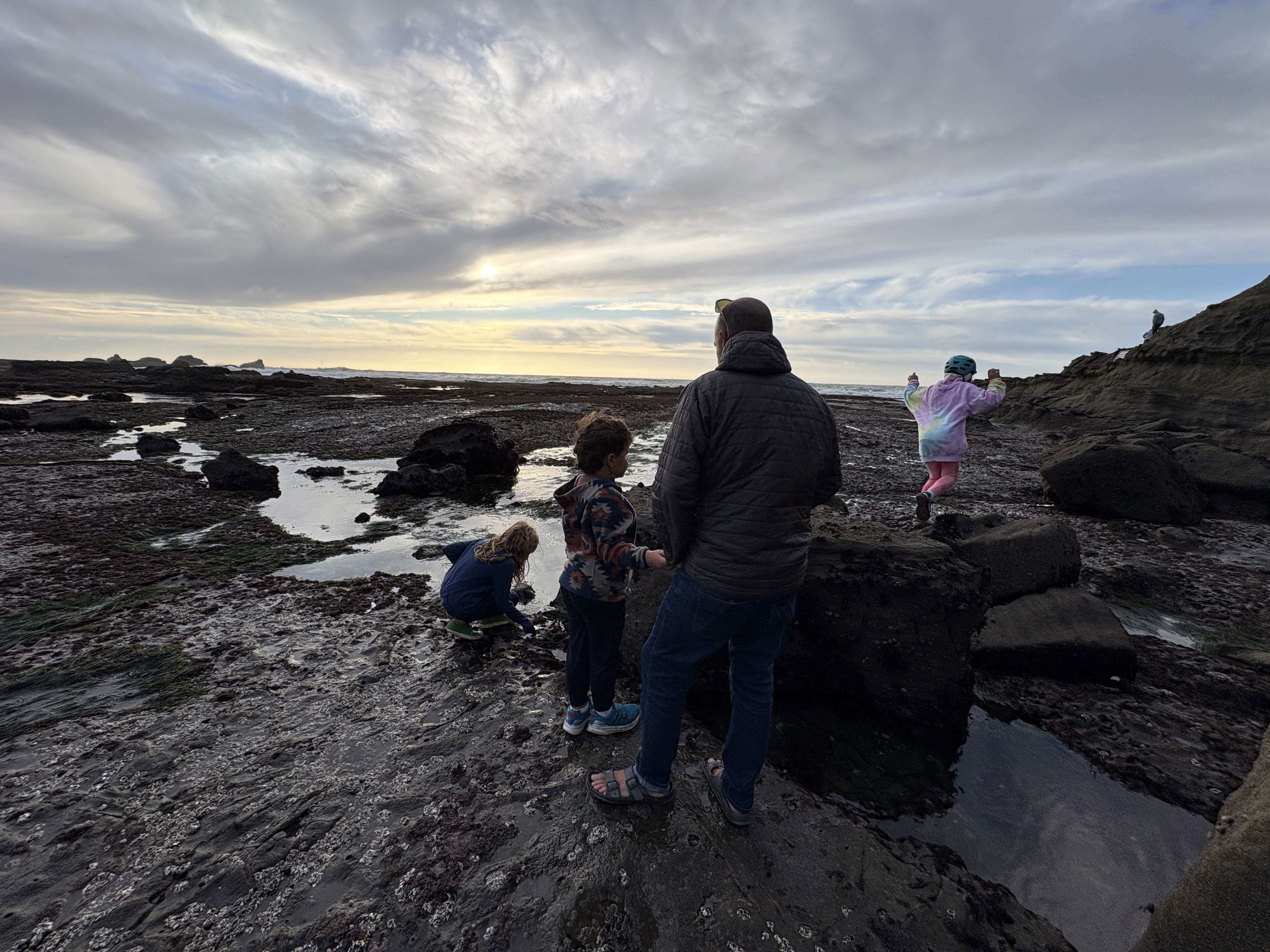While exploring, we noticed a group of college-aged students calling out things like, “Professor, check this out!” Once our kids caught on, they jumped right in, asking, “Professor, what is this?” It turned out he really was a marine biology professor with his field biology class, and he generously showed the kids what to look for. With his guidance, we found starfish, sea anemones, sea urchins, all kinds of crabs, and so many tiny bits of sea life we would have walked right past on our own. He also helped us understand what was safe to touch and handle. We had an absolute blast, though by the end we were frozen and very ready for hot cocoa.