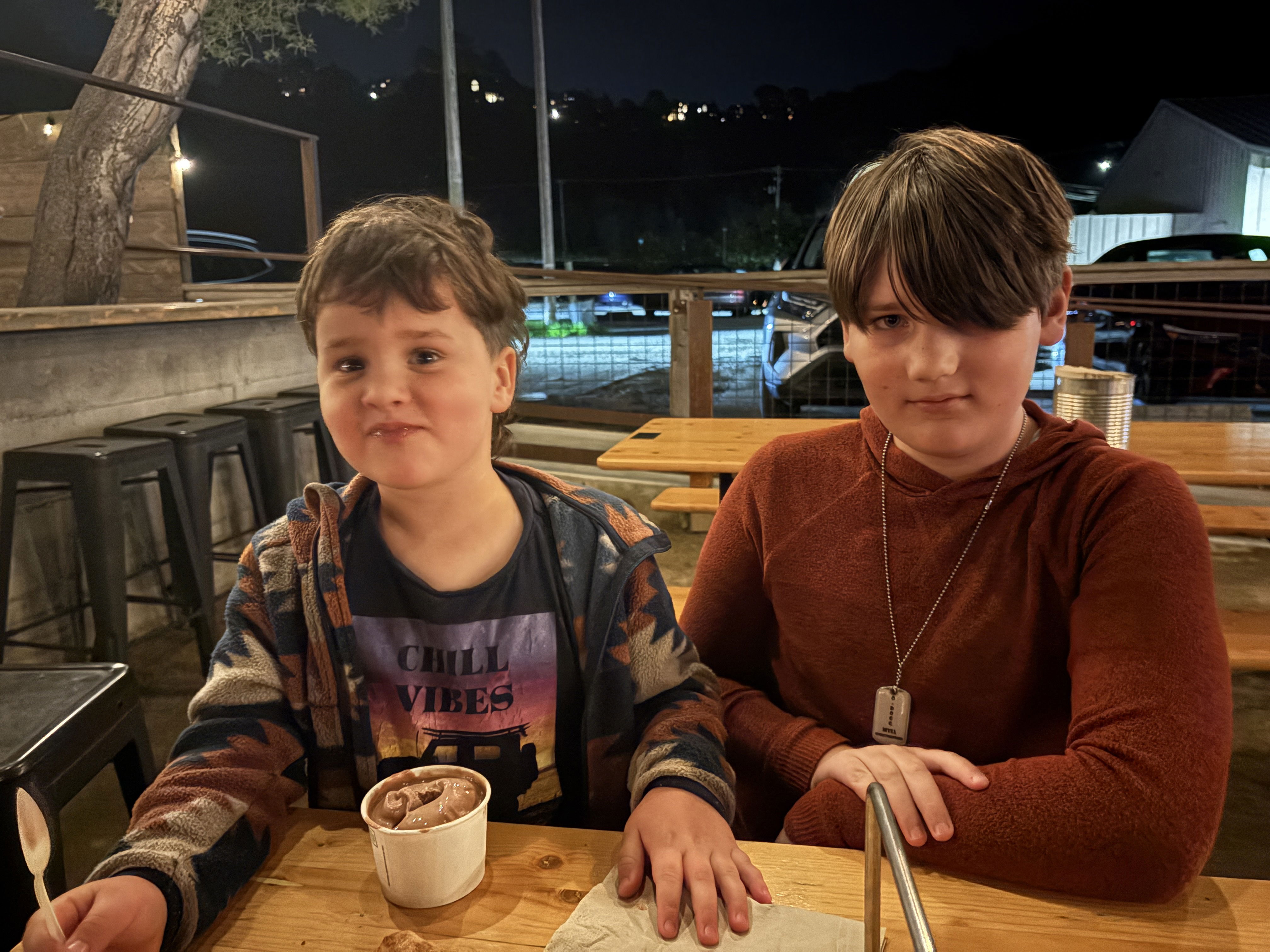 After a yummy lunch, we hopped into our very first Waymo. The kids were totally mind-blown that there was no driver. It went mostly smoothly… until it stopped because we had, apparently, one too many passengers. Cue a very official pause while someone climbed out. Luckily, by that point, we were close enough for Aaron to heroically walk the rest of the way, and the kids got a kick out of the “driverless drama”.