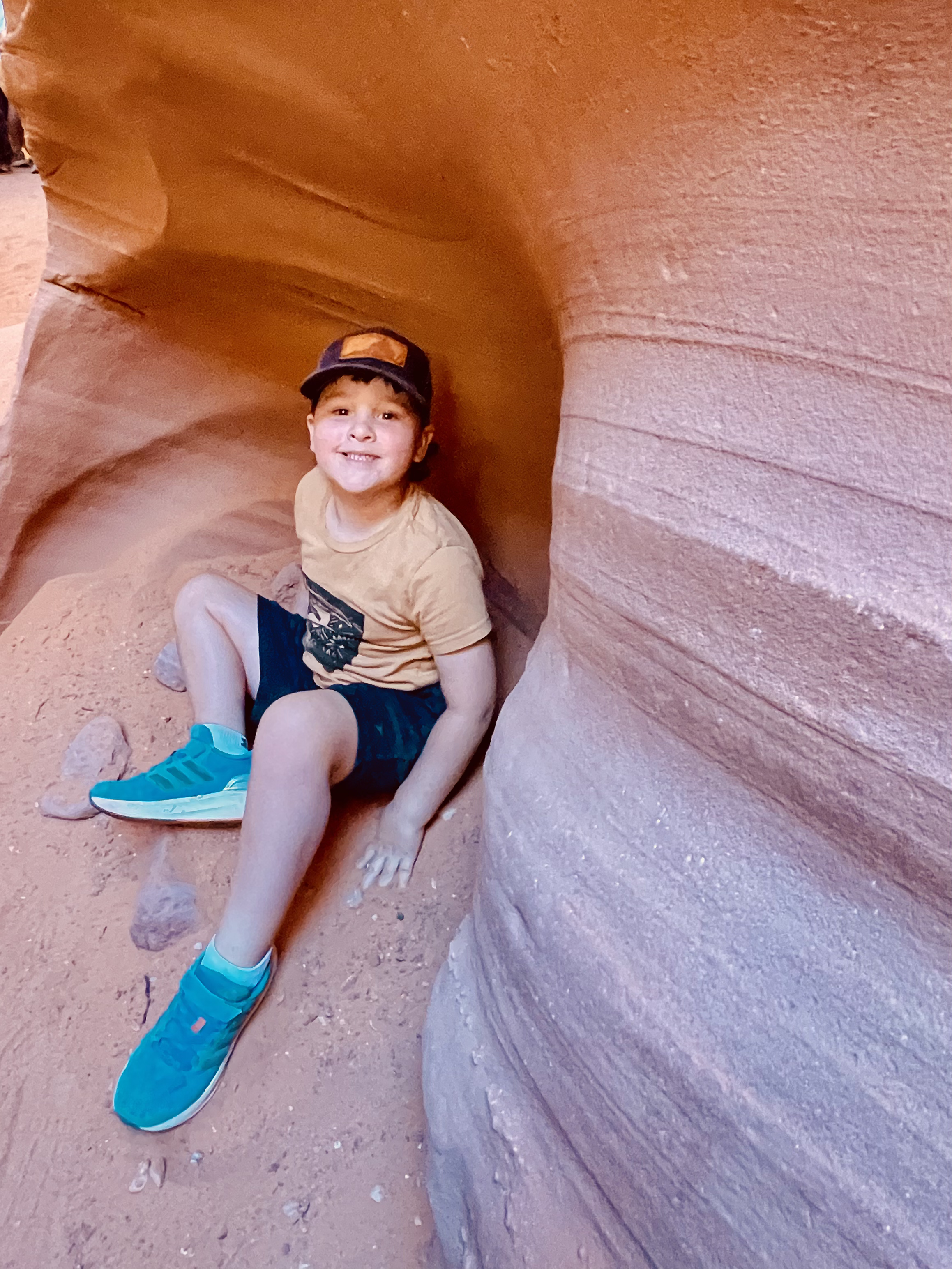 My parents agreed it was their favorite part of the trip. Climbing down and scrambling through the canyon felt incredibly immersive, like exploring a hidden wonderland. Sayer loved playing in the soft sand, and I couldn’t resist running my fingers along the canyon walls and ledges, marveling at the fine, silky grains of sand.