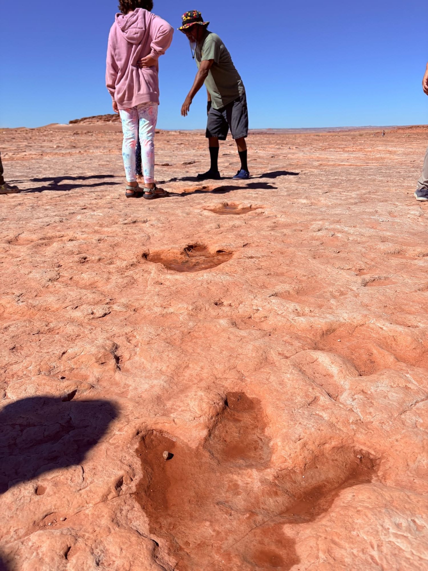 While we were visiting Antelope Canyon, our Navajo guide suggested we check out the Dino Tracks, a very cool spot that, funny enough, turned out to be right on that same “crappy stretch of highway” I mentioned earlier. When we pulled up, we were met by our own guide, who had grown up on that land. He was fascinating and full of stories and information. I asked where he had learned so much, and he told us that when he was a young boy, paleontologists had come to dig and research there. He followed them around asking questions, and they took him under their wings, teaching him everything they could.
