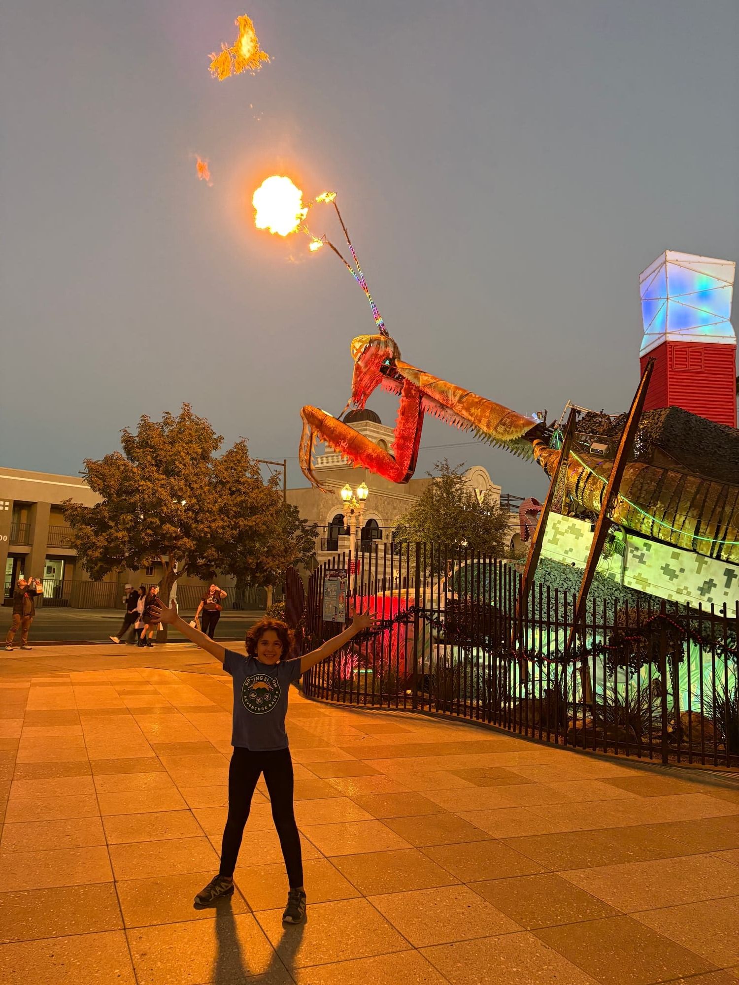 One afternoon, we went to Container Park and had so much fun playing in the treehouse playground. We ate our favorite poke bowls and ran back and forth to watch the fire show every time the Mantis started performing. It was so cool! He can shoot flames from his antlers up to six stories high! 🔥