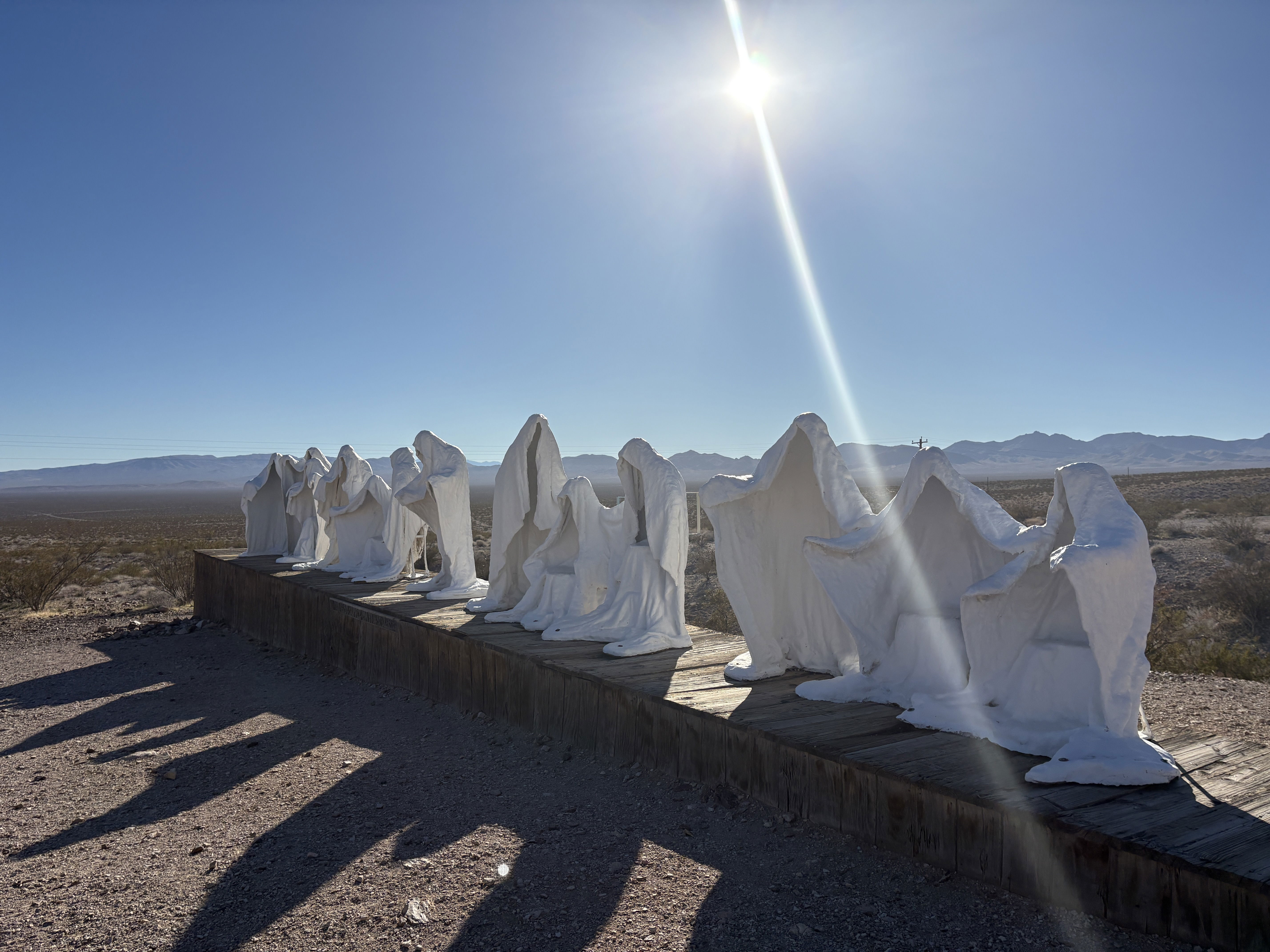 Also in Rhyolite is the Goldwell Open Air Museum, which had a bunch of weird but cool statues. My favorite was the window one because, depending on which side you looked through, it showed totally different things. One side framed a beautiful view of the mountains🌄, and the other framed a statue of a naked lady.
