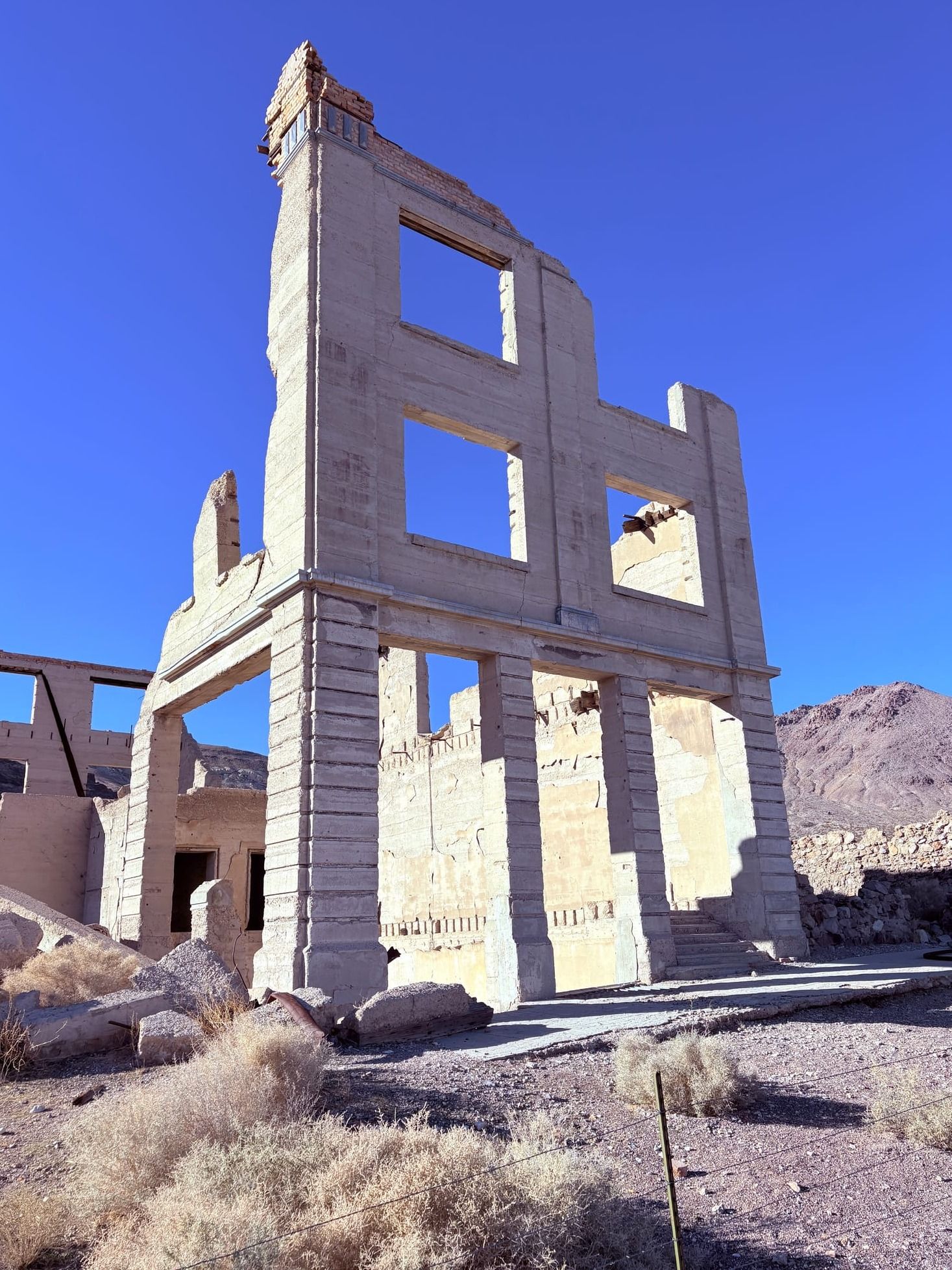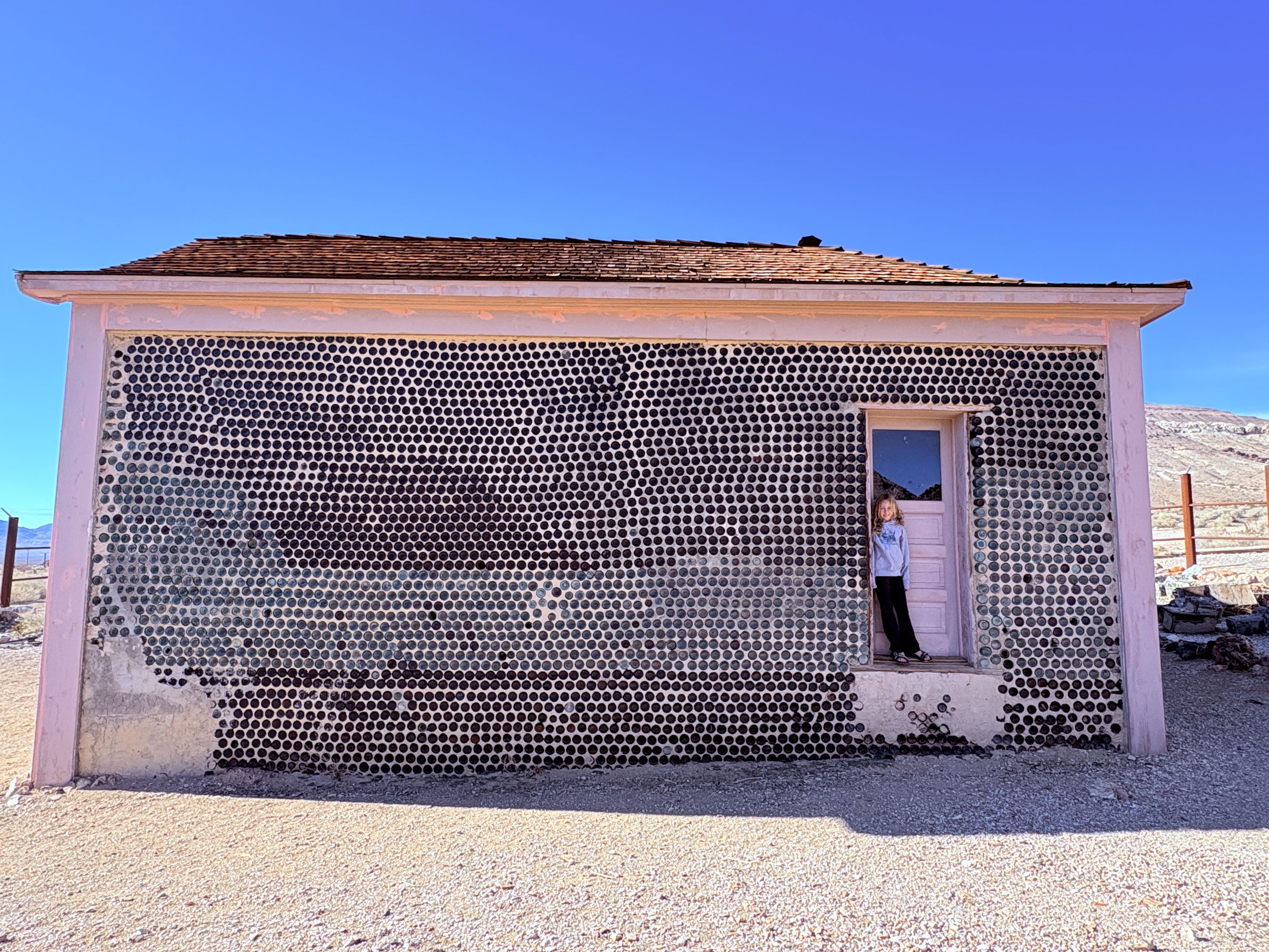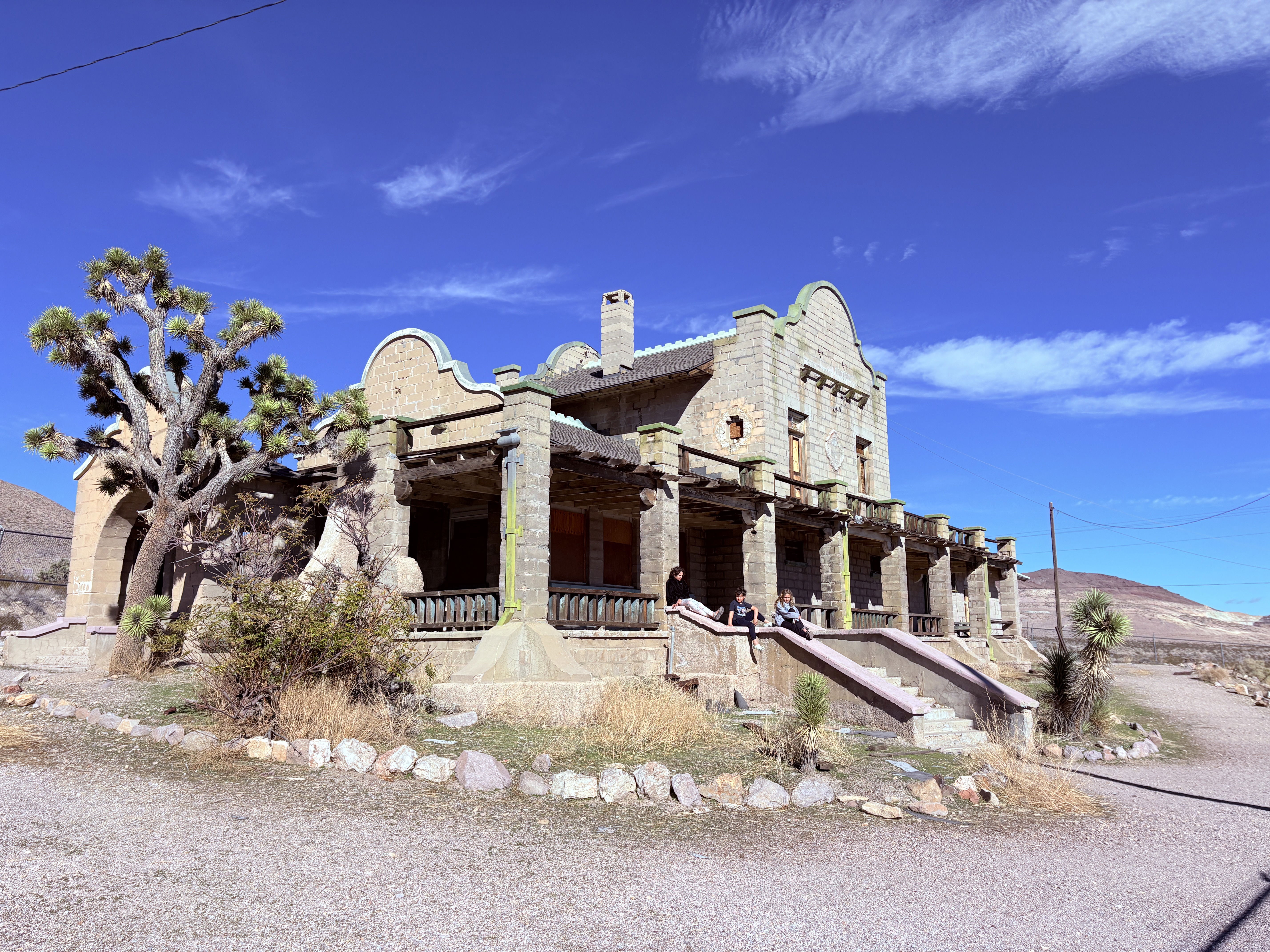 Right outside the national park was Rhyolite, a really interesting ghost town. First, we saw a house made out of glass bottles🍾. Then we had a picnic in front of a building that used to be an old train depot but was most recently a casino. One thing we thought was interesting is that the town only lasted about seven years and had 5,000–8,000 people👥 living there before everyone abandoned it because they weren’t finding any gold💰!