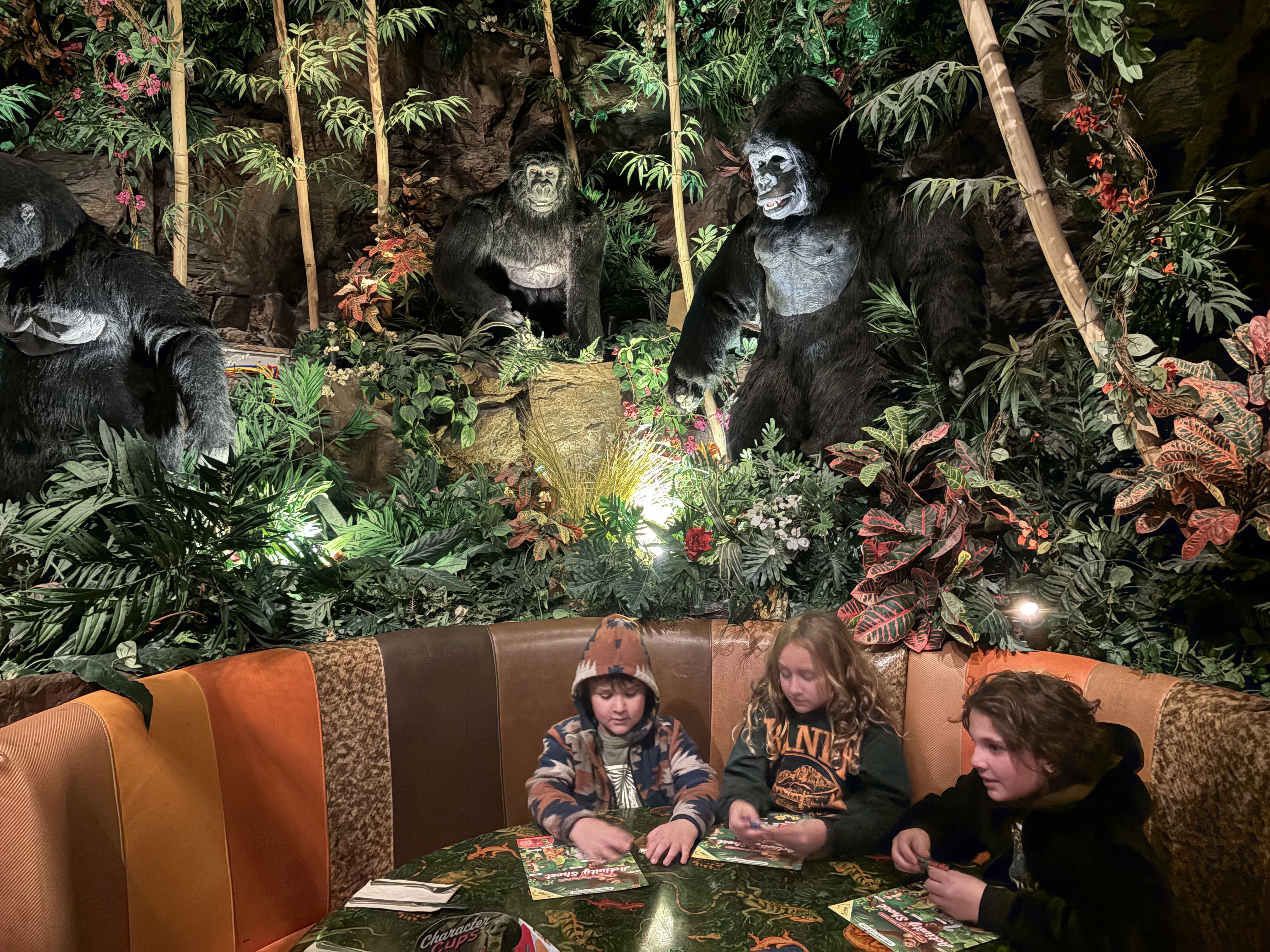 After we finished, we walked across a bridge that went right over The Strip to the Rainforest Café for dinner. It was super cool, and we got a seat right next to the fake gorillas and guess what?! They moved and made sounds. It was so funny. Every once in a while, it would get dark, and it sounded like there was a thunderstorm. It even flashed like lightning! It was so much fun.